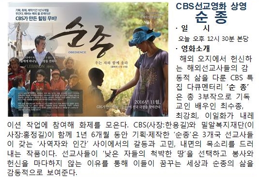 CBS 선교영화 상영