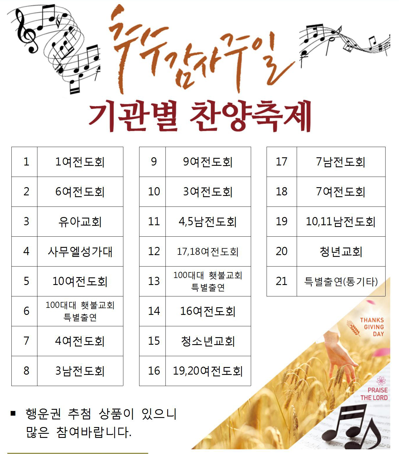추수감사주일 기관 찬양축제